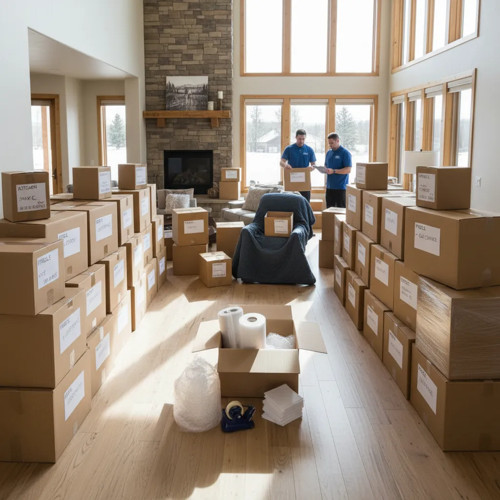 Professional packing is available as an add-on service, priced by scope—full house packing, specific rooms only, or fragile items exclusively.