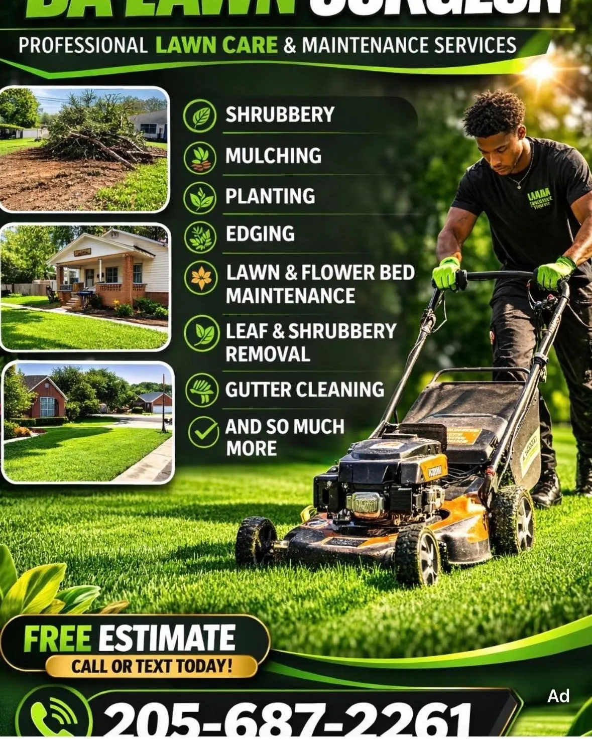 Da Lawn Surgeon has been taking care of my yard for a few months now and the difference is night and day. They show up on time, edge everything clean, and my lawn always looks professionally done. Highly recommend them if you’re in Birmingham.