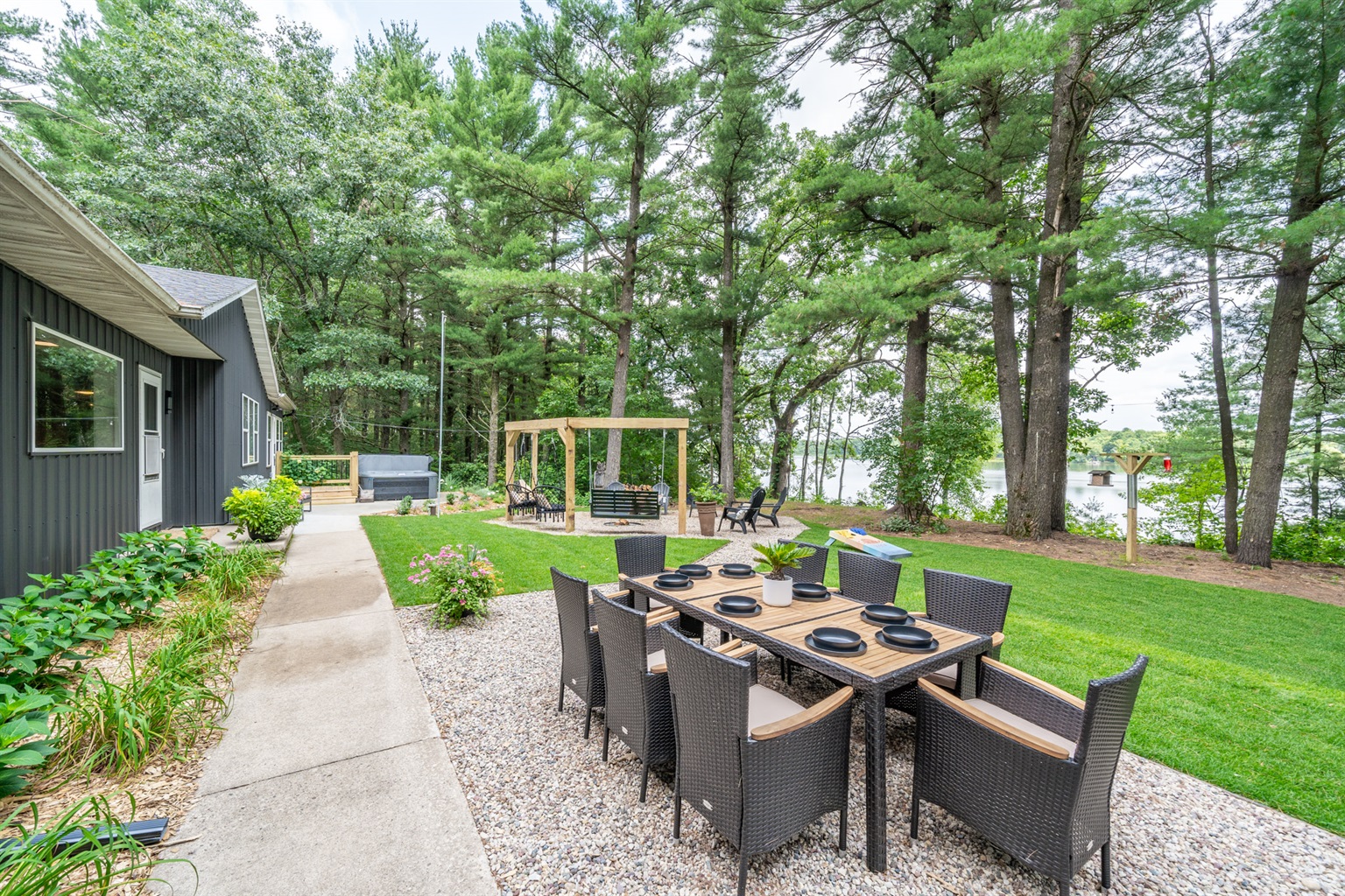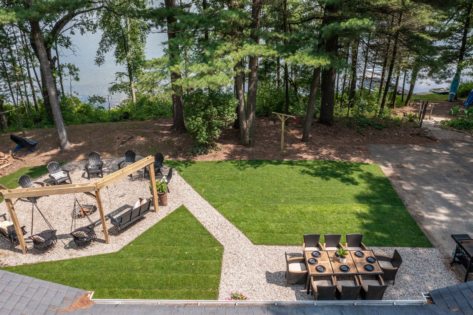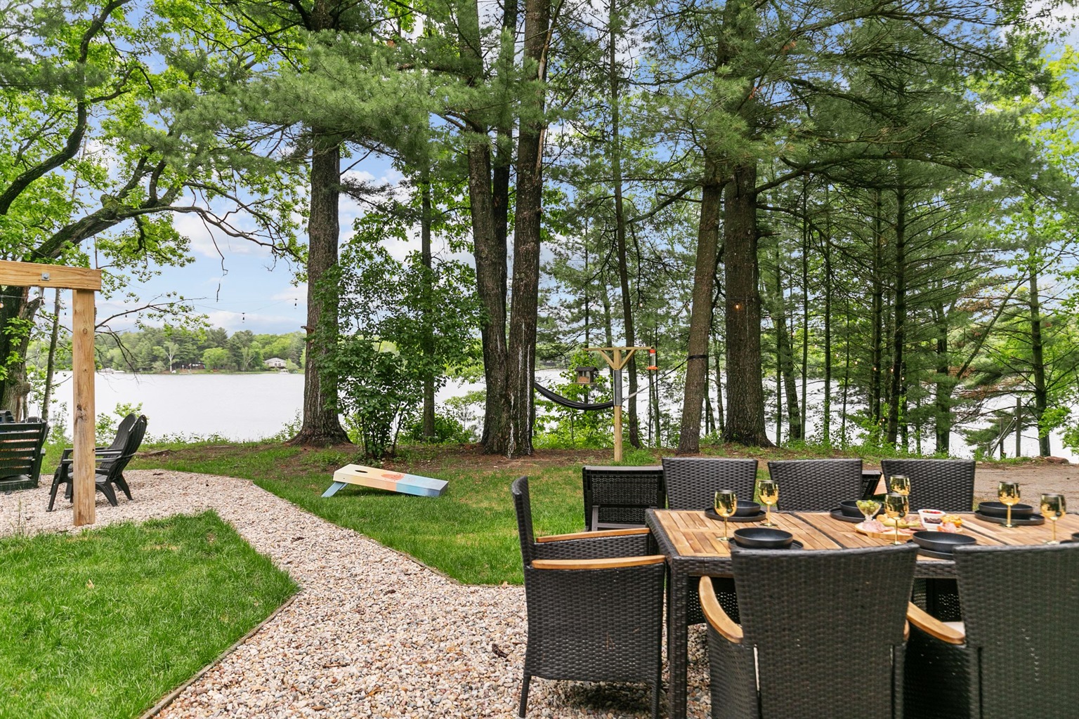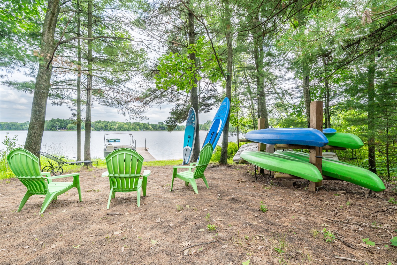Sunrise Vista sits directly on the peaceful shoreline of Porter’s Lake, a calm, non-wake lake ideal for swimming, paddling, and quiet enjoyment. Whether you’re planning a family getaway, a friends’ retreat, or a peaceful escape into nature, we deliver the perfect balance of comfort, adventure, and serenity.