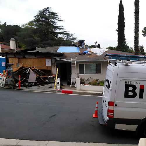 Bison Builders responds immediately after a fire or storm with professional emergency tarping to stop further water or weather intrusion. Our crews secure all exposed roof areas using industrial-grade materials designed to withstand wind and rain until permanent repairs begin. Once the structure is stabilized, our licensed roofing specialists perform a full inspection to assess underlying damage, structural integrity, and moisture penetration.