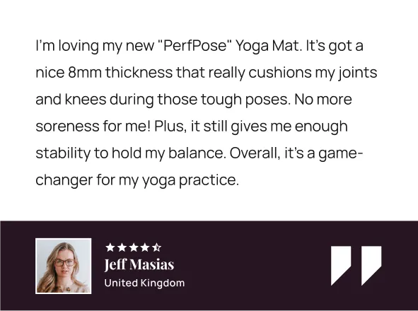 I love how it cushions my joints and knees, making my practice so much more enjoyable. No more aching joints for me! And, this "PerfPose" Yoga Mat is made of high-quality TPE material which is flexible and durable. Highly recommend this mat for anyone looking for a comfortable and stable practice.