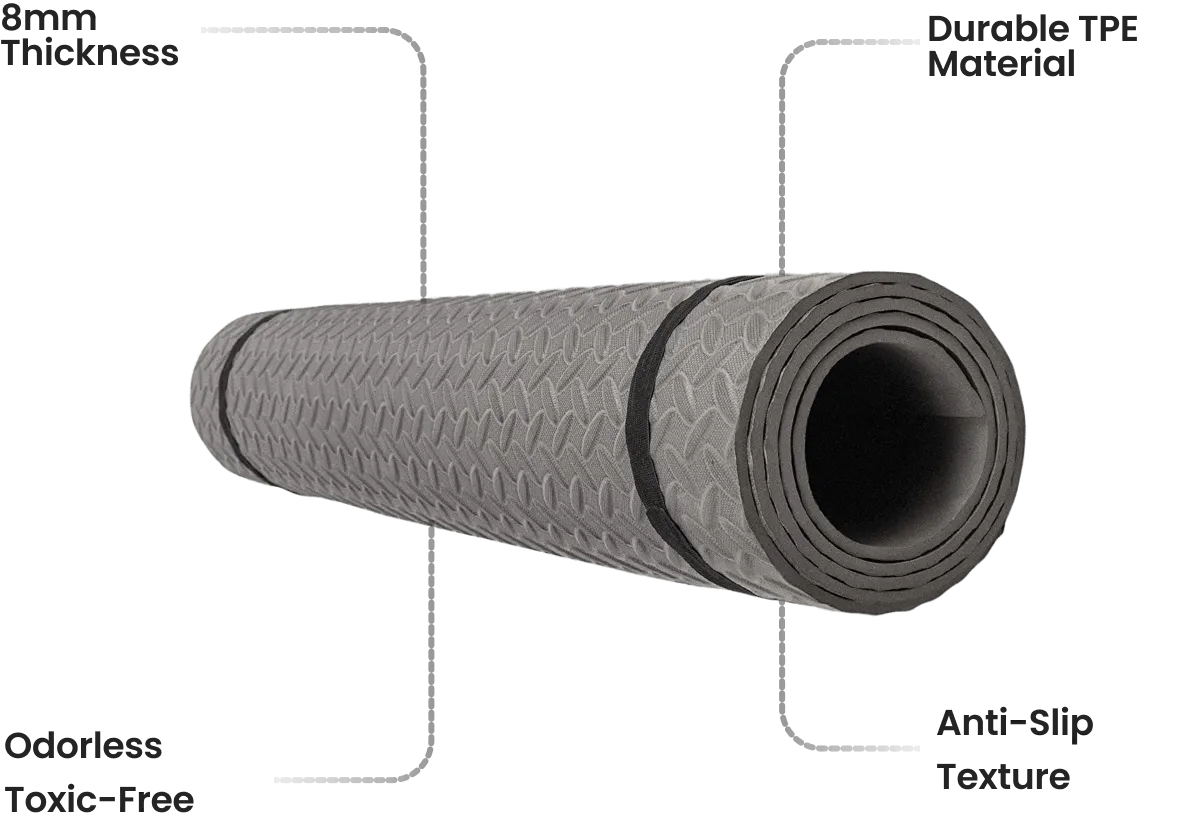 Unleash the full potential of yoga practice with the ultimate yoga companion - non-slip, thick cushioned "PerfPose" Yoga Mat! Say goodbye to slippery surfaces and uncomfortable joints and hello to stability, comfort and endless possibilities. With its double-sided, anti-slip base and 8mm of joint-saving cushioning, this mat is the missing piece in a yoga journey. So why settle for less? Take yoga practice to the next level and experience the difference - Get the "PerfPose" Yoga Mat now!