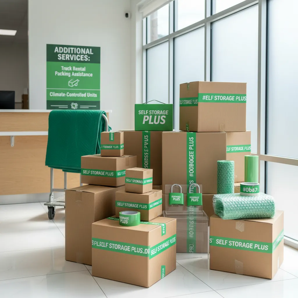Optional services enhance convenience and protection beyond basic storage rental. Access moving supplies, packing materials, and boxes on-site.